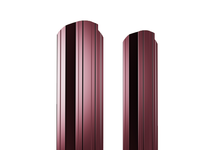 Металлический П-образный штакетник с фигурным краем и двухсторонним покрытием ДВС PE (Двухсторонний Полиэстер) толщиной стали 0,45 мм, цвет RAL3005 Винно-красный. Штакетник повышенной прочности, за счет увеличенной толщины стали и нескольких продольных ребер жесткости. Ширина профиля – 125 мм. Лаконичное ограждение со скругленным краем идеально впишется в природный ландшафт. За счет двухстороннего окрашивания забор смотрятся одинаково эстетично как с внутренней стороны участка, так и со стороны улицы. Фигурный срез сглаживает строгость формы. Благодаря выступающей прямоугольной части профиля, ограждение выглядит более объёмно. Штакетник с закругленным краем разной высоты можно использовать для создания интересной формы верха ограждения в виде волны, дуги, пирамиды или другой геометрической формы. Также этот профиль идеален для зонирования гостевых зон и различных площадок внутри участка.